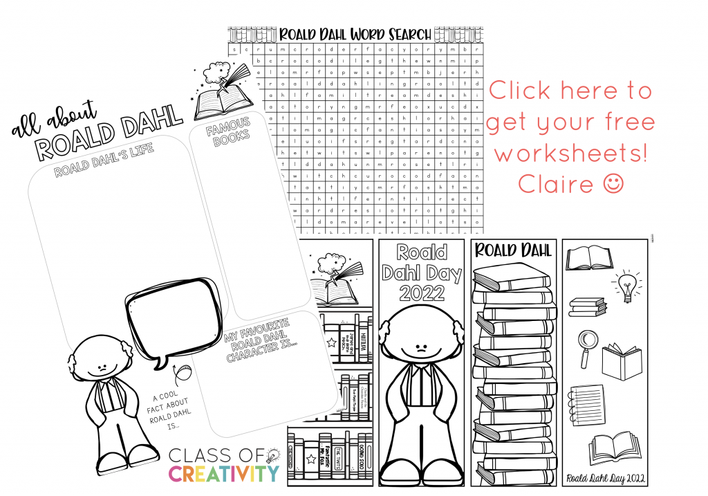 And if you’re still looking for more ideas, I created this set of activities for you to use with your students tomorrow! It included a Roald Dahl project sheet, Roald Dahl word search and set of Roald Dahl day bookmarks! You can download it for free by following the link below! Happy teaching! Claire x