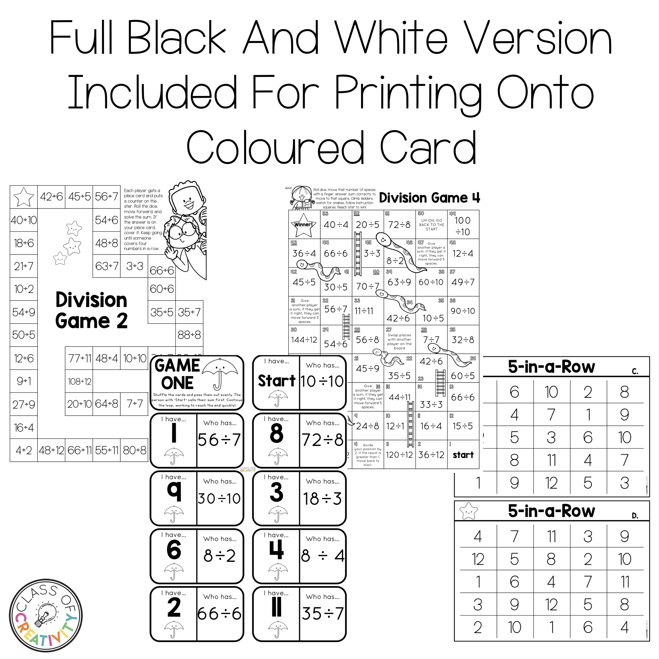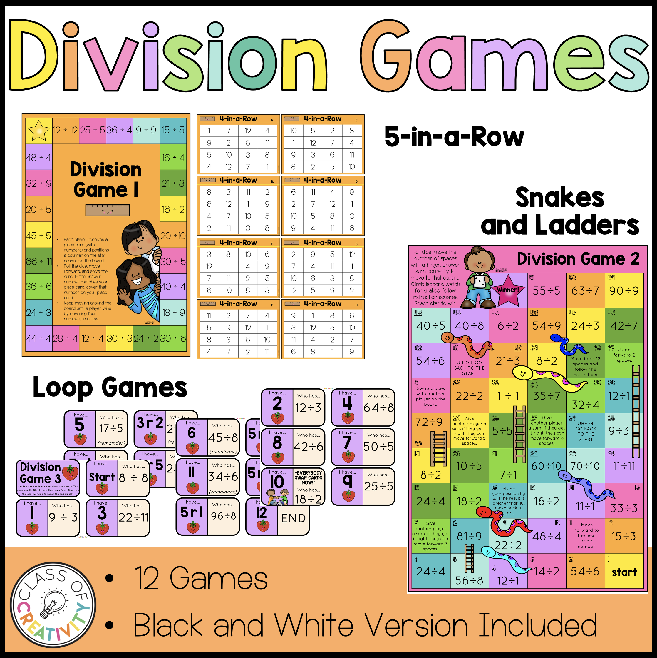 This set of three exciting division games, suitable for 3rd—6th-class students, makes learning division facts from ÷1 to ÷12 engaging and fun!MORE INFO: