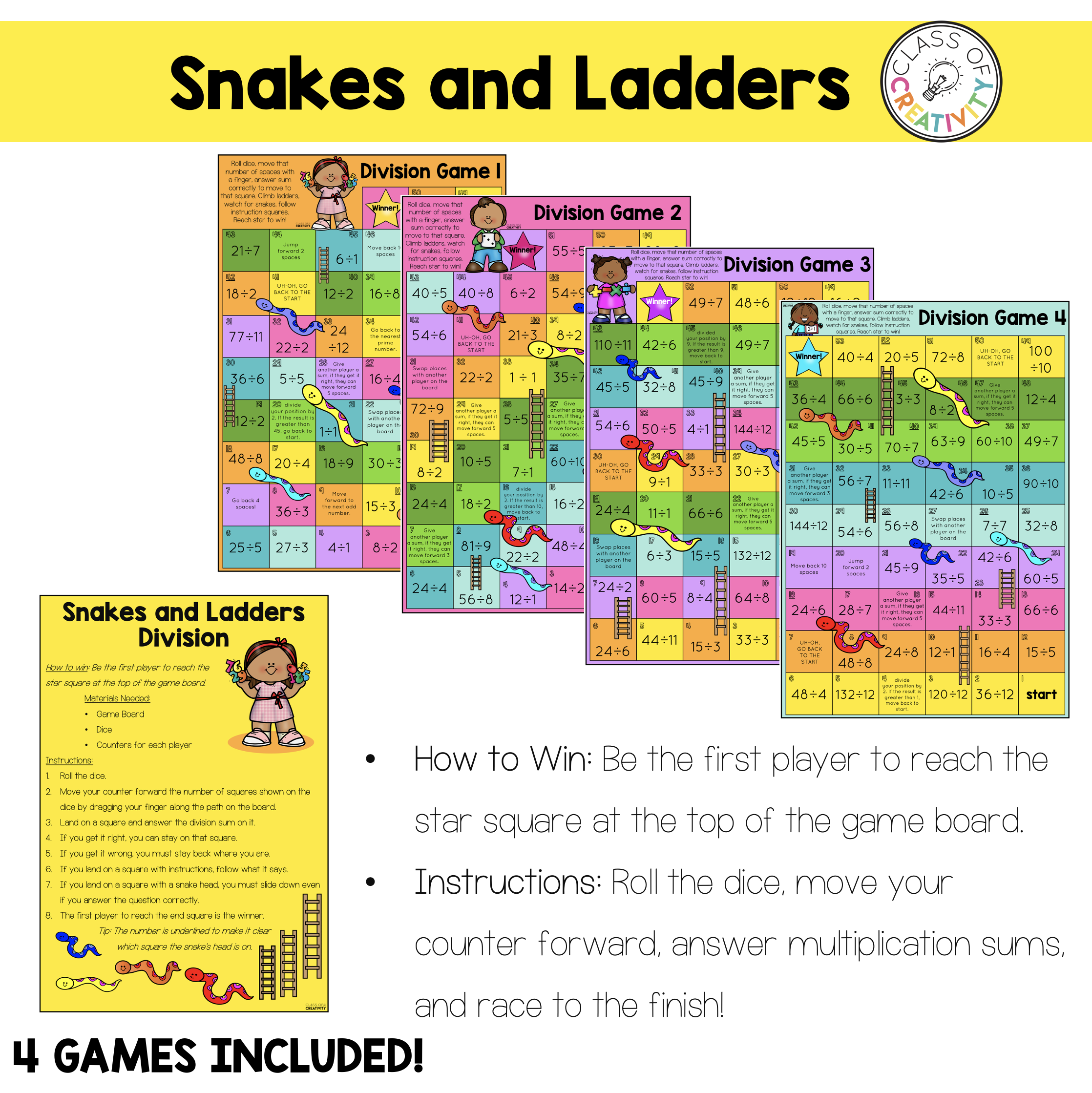 Instructions: Roll the dice, move your counter forward, answer division sums, and race to the finish!