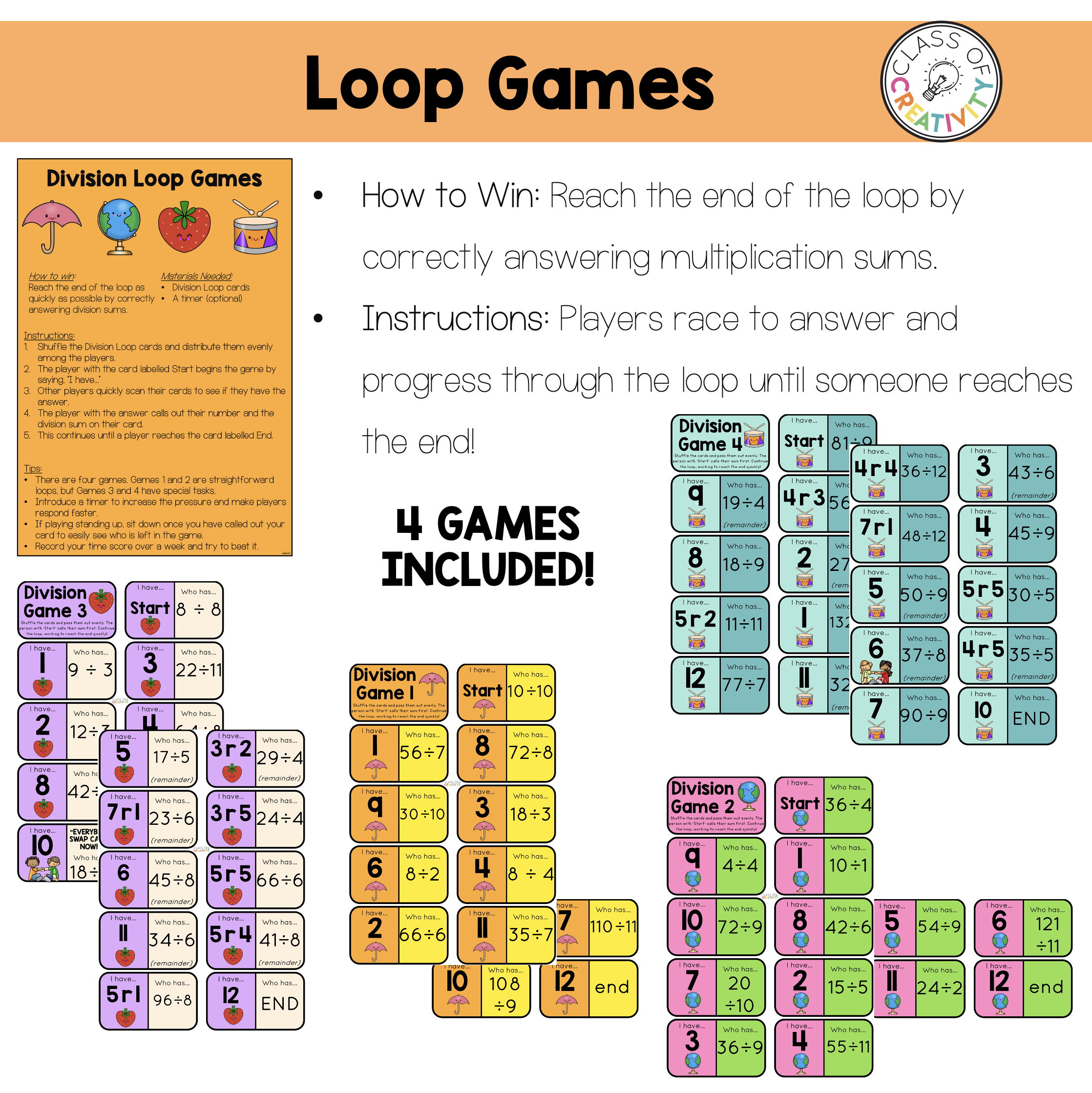 How to Win: Reach the end of the loop by correctly answering division sums.